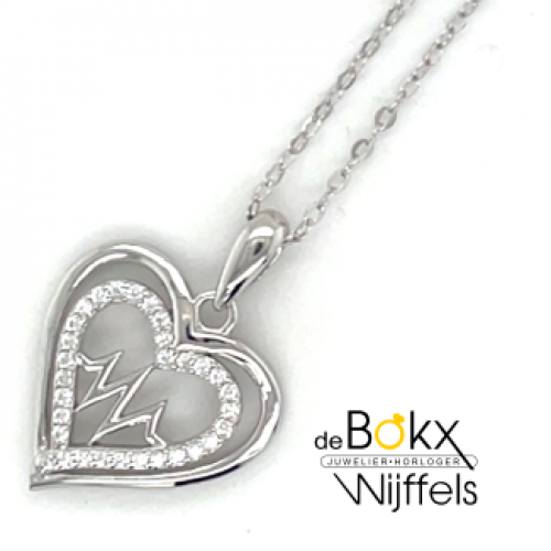 ketting met hanger Lotus zilver hartje met hardslag in het midden - 600797